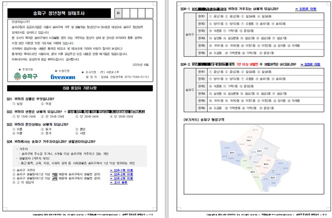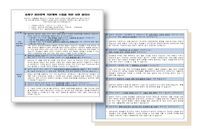 송파구 청년대상 온오프라인 설문조사로 정량적 기초자료 확보